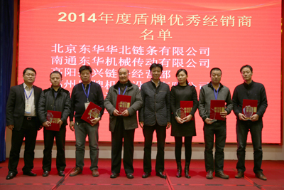 最后,內(nèi)銷公司總經(jīng)理戴迪漢宣讀了東華19名2014年度“優(yōu)秀經(jīng)銷商”名單;盾牌公司總經(jīng)理錢文孝宣讀了盾牌6名2014年度“優(yōu)秀經(jīng)銷商”名單。董事長(zhǎng)宣碧華向獲獎(jiǎng)經(jīng)銷商頒發(fā)了獎(jiǎng)杯和證書,并合影留戀。
