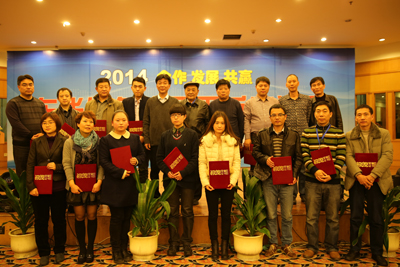 最后,內(nèi)銷(xiāo)公司總經(jīng)理戴迪漢和錢(qián)文孝宣讀了優(yōu)秀經(jīng)銷(xiāo)商名單。宣董事長(zhǎng)向優(yōu)秀經(jīng)銷(xiāo)商頒發(fā)了榮譽(yù)證書(shū)并合影留戀。