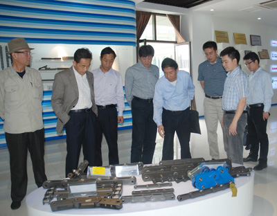 9月23日,浙江省科技咨詢中心副主任陳偉、杭州市科技咨詢中心、杭州市院士專家服務(wù)中心主任吳挺等省市區(qū)科學(xué)技術(shù)協(xié)會(huì)領(lǐng)導(dǎo)陪同寧夏回族自治區(qū)科學(xué)技術(shù)協(xié)會(huì)副主席王冰等領(lǐng)導(dǎo)到東華集團(tuán)就院士工作建設(shè)情況及取得的成效進(jìn)行調(diào)研。圖為副總經(jīng)理袁立華、技術(shù)中心顧問(wèn)陳金賢陪同陳主任一行參觀樣品。