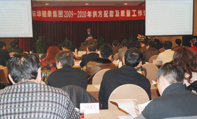 在談到2010年?yáng)|華供應(yīng)鏈建設(shè)時(shí),張總說(shuō),2010年,東華將通過(guò) “質(zhì)量提升年”作為貫穿公司全年的中心工作,特別是要加強(qiáng)供應(yīng)鏈建設(shè),使供方提供的產(chǎn)品質(zhì)量、交貨期、價(jià)格、服務(wù)滿足東華市場(chǎng)競(jìng)爭(zhēng)的需要,同時(shí)推進(jìn)事業(yè)部機(jī)制的有效運(yùn)行,強(qiáng)化企業(yè)基礎(chǔ)管理,增強(qiáng)企業(yè)活力,提高顧客滿意度,通過(guò)穩(wěn)健持續(xù)地發(fā)展,一步一個(gè)腳印,力爭(zhēng)在5-10年內(nèi)成為世界一流鏈傳動(dòng)企業(yè),并和廣大供應(yīng)商進(jìn)一步建立雙贏互利的合作伙伴關(guān)系。