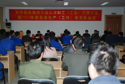 3月1日,東華集團(tuán)召開(kāi)三屆五次職工(工會(huì))代表大會(huì)暨2009年度先進(jìn)生產(chǎn)(工作)者表彰會(huì)議??偨?jīng)理張世強(qiáng);副總經(jīng)理廖杭州、袁立華;財(cái)務(wù)總監(jiān)趙鵬飛;董事宣志榮;工會(huì)主席魯小林等高層、優(yōu)秀中層、崗位標(biāo)兵、先進(jìn)(生產(chǎn))工作者代表等80多人參加會(huì)議。