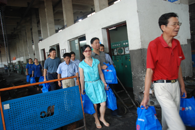 7月22日,江干區(qū)總工會主席黃建德、筧橋鎮(zhèn)工會主席王吉龍一行到東華鏈條集團向工作在高溫一線的員工送清涼,并送上慰問品。集團工會副主席高文生陪同慰問。