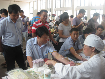 由于杭州市血庫告急,7月14日,東華集團積極響應(yīng)江干區(qū)獻(xiàn)血辦的號召,組織32名職工參加了由筧橋鎮(zhèn)組織的無償獻(xiàn)血活動,累計獻(xiàn)血量達(dá)7000毫升。