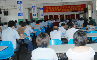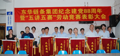 會上,總經(jīng)理張世強作了重要講話。張總說,在“七一”即將來臨之際,我們召開“紀(jì)念中國共產(chǎn)黨成立88周年暨五講五賽勞動競賽表彰大會”。首先,我代表集團領(lǐng)導(dǎo)、黨委向受表彰的先進集體和先進個人表示熱烈地祝賀,向他們表示崇高的敬意!號召全體黨員、全廠職工認(rèn)真學(xué)習(xí)他們的先進事跡和崇高精神,立足崗位、艱苦奮斗,在生產(chǎn)勞動中為企業(yè)建功立業(yè),在推動?xùn)|華集團持續(xù)發(fā)展中做出更大的貢獻。