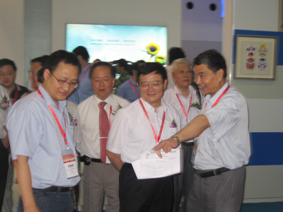 寶鋼集團(tuán)董事長(zhǎng)徐樂江、中國(guó)金屬學(xué)會(huì)常務(wù)副理事長(zhǎng)洪及鄙到東華展臺(tái)參觀