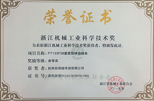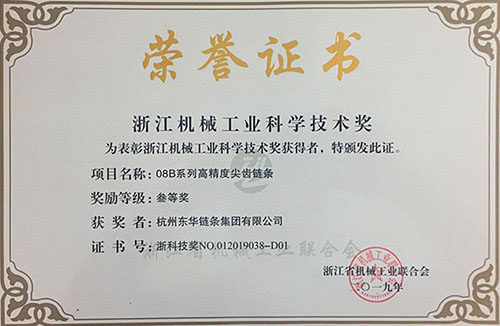 日前,浙江省機械工業(yè)聯(lián)合會通過視頻會議召開了五屆二次會員代表大會和五屆三次理事會。會上公布了54項產(chǎn)品及技術(shù)創(chuàng)新成果獲得“2019年度浙江機械工業(yè)科學(xué)技術(shù)獎”。東華自主開發(fā)的“08B系列高精度尖齒鏈條”和“PT133F38重載型梯級鏈條”兩項高端鏈條產(chǎn)品榮獲三等獎,這是東華產(chǎn)品創(chuàng)新項目連續(xù)八年榮獲浙江機械科技獎,也是獎項名單中唯一鏈傳動企業(yè)的高端產(chǎn)品獲獎。