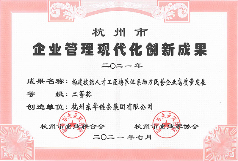 集團《構建技能人才工匠培養(yǎng)體系助力民營企業(yè)高質量發(fā)展》獲評2021年杭州市企業(yè)管理現代化創(chuàng)新成果二等獎。
