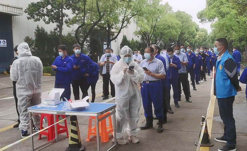 對內(nèi),公司在各廠區(qū)設(shè)置核酸檢測點,進(jìn)行全員檢測;員工進(jìn)廠及外部來訪人員一律按防疫要求檢查;?每天對各廠區(qū)嚴(yán)格消毒成為常態(tài)化舉措;專人統(tǒng)計員工的體溫、疫苗接種、核酸檢測、健康碼變色等情況,登記造冊,及時了解員工情況。
