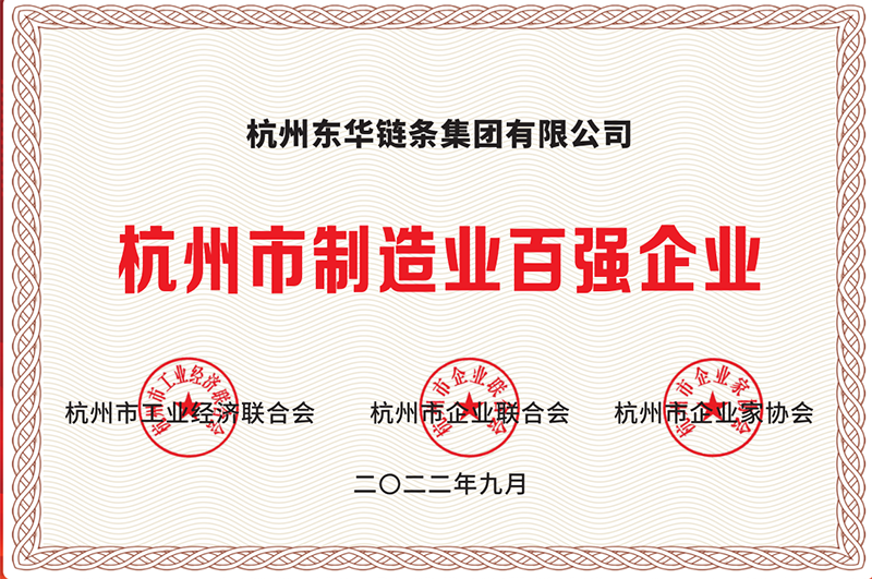 日前,杭州市工業(yè)經(jīng)濟(jì)聯(lián)合會(huì)、企業(yè)聯(lián)合會(huì)、企業(yè)家協(xié)會(huì)在市民中心召開了2022杭州市百強(qiáng)企業(yè)榜單發(fā)布會(huì)。東華鏈條集團(tuán)躋身杭州市制造業(yè)百強(qiáng)企業(yè)榜第44位。