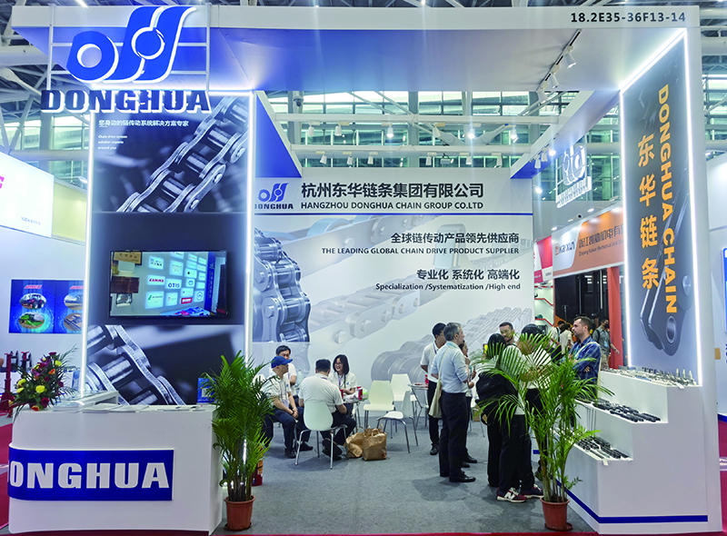 東華鏈條展廳位于展館的D區(qū),由國際市場部、盾牌公司等聯(lián)合參展,展品有各種高端滾子鏈、輸送鏈等150余件。展會期間不斷有世界各地的新客戶來到展廳參觀詢問,近至亞洲,遠至南美和歐洲,他們詢問了解公司信息,交換名片和遞送公司宣傳冊,也有合作多年的老客戶、老朋友到東華展廳參觀交流。參展團隊向客人介紹企業(yè)的發(fā)展情況以及新產(chǎn)品、新技術(shù)等信息,雙方積極尋求新的合作方向。