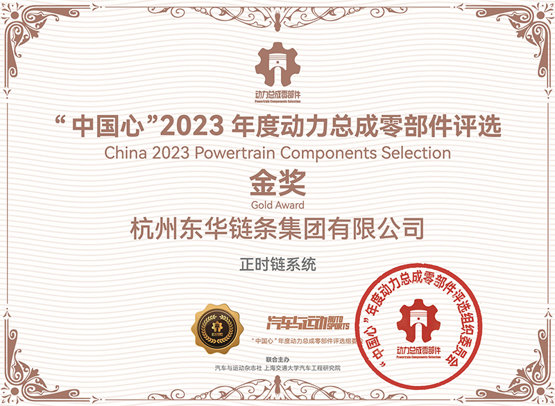 10月27日,“中國心”2023年度動力總成零部件評選在揚州市拉開帷幕。東華鏈條集團汽車鏈事業(yè)部總經理邢建恒、營銷處處長汪恭兵攜東華最新汽車正時鏈系統(tǒng)解決方案的CL04DF24-2x3W(132L)正時鏈系統(tǒng)、CL05DF2(a)4-2x4W(130L)正時鏈系統(tǒng)、CL04DF26-4x4W(174L)正時鏈正時系統(tǒng)參評,這三套正時系統(tǒng)產品已大批量配套國內主流汽車發(fā)動機。經過專家組現(xiàn)場評審,2023年度動力總成零部件共評出六名金獎和四名優(yōu)秀獎。東華參選的“正時鏈系統(tǒng)”獲得“中國心”2023年度動力總成零部件金獎。獲獎理由為東華鏈條具備完全自主正向系統(tǒng)設計、仿真分析以及系統(tǒng)動態(tài)測試能力,其研發(fā)的輕量化、低摩擦、高耐磨、高疲勞鏈系統(tǒng)產品在國內汽車主機市場占有率達到22%。創(chuàng)新的銷軸表面滲釩專利技術廣泛應用于最新混動專用發(fā)動機、渦輪增壓發(fā)動機、柴油發(fā)動機和甲醛發(fā)動機。