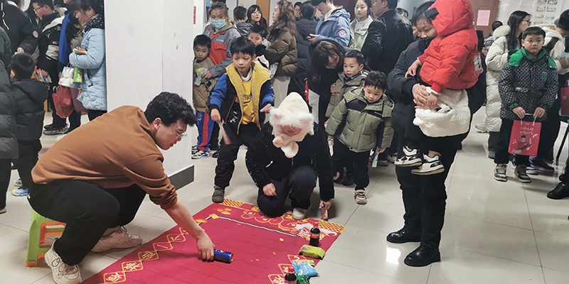 在公寓職工活動室,到處高掛著喜慶的燈籠,洋溢著節(jié)日的氛圍。公司各事業(yè)部、職能部門共12個分工會分別設(shè)置游戲節(jié)目,不僅有元宵節(jié)傳統(tǒng)的猜燈迷、投壺、飛鏢、套圈、投沙包等,也有新意的倒著說、掌上明珠、財源滾滾、摸彩珠等豐富多彩的小節(jié)目。現(xiàn)場隨處可見員工們帶著孩子一起參加活動,他們互相合作,協(xié)調(diào)配合完成各種游戲活動,大大增進了親子之間的互動交流。