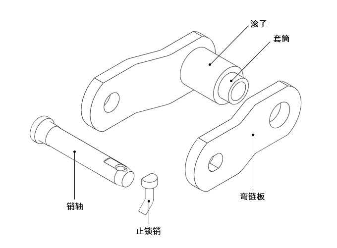 ● 彎板滾子鏈在結構上只有一種彎板鏈節(jié),鏈板的折彎使鏈條能吸收較大的沖擊載荷;銷軸和套筒、鏈板間的間隙較大,在惡劣工況可以保持良好的靈活性。