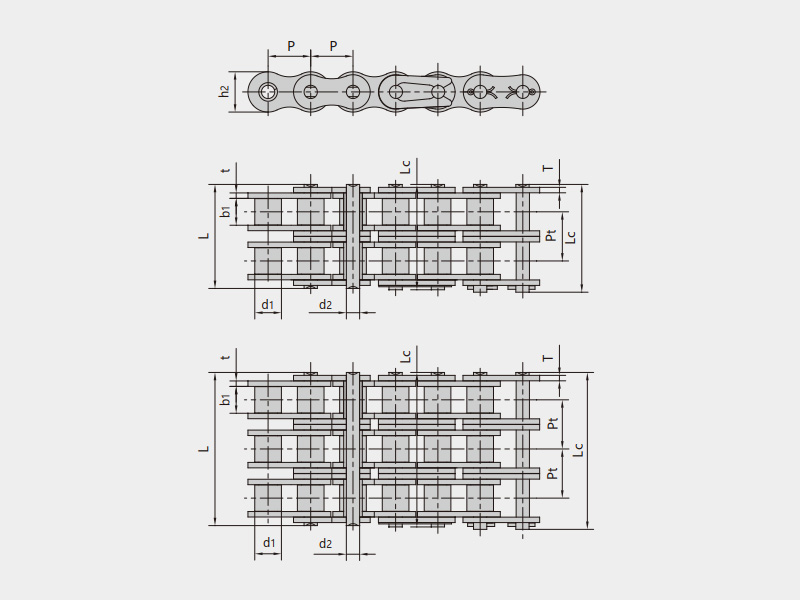 ● 自動(dòng)扶梯驅(qū)動(dòng)鏈分為主驅(qū)動(dòng)鏈和扶手帶驅(qū)動(dòng)鏈,按照ISO 606標(biāo)準(zhǔn)進(jìn)行設(shè)計(jì),其互換性尺寸與標(biāo)準(zhǔn)滾子鏈一致,主要以A系列、B系列滾子鏈及其加強(qiáng)型鏈條為主。
