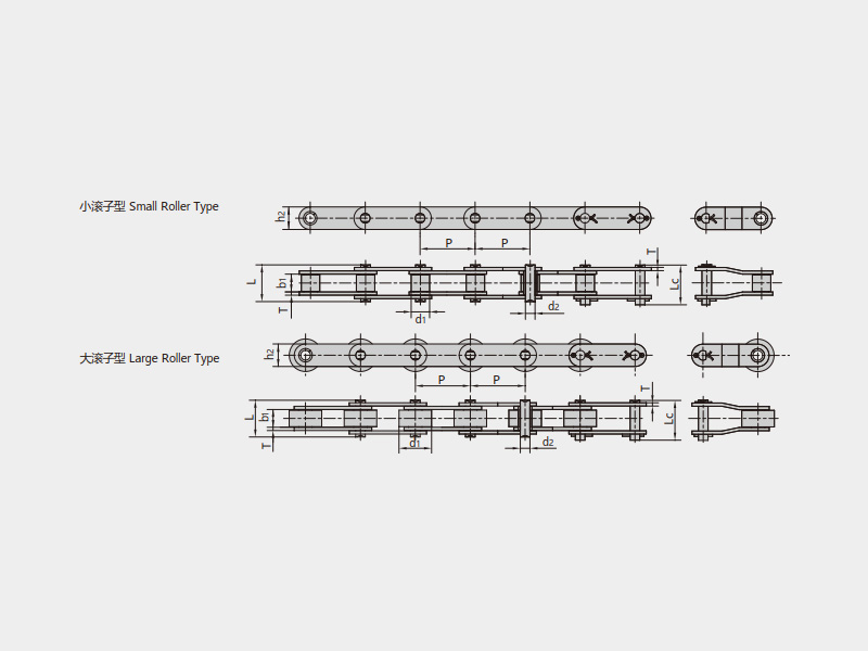 ● 輸送用滾子鏈的基鏈尺寸符合ISO、ASME/ANSI、DIN、JIS等標準的規(guī)定,主要有A系列直邊鏈板滾子鏈、B系列直邊鏈板滾子鏈、短節(jié)距帶附件輸送鏈、雙節(jié)距輸送鏈、雙節(jié)距帶附件輸送鏈等;
