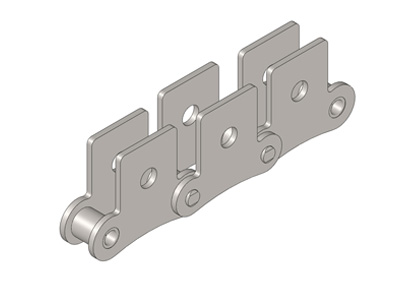 ● 輸送用滾子鏈的附件根據(jù)使用要求設(shè)計不同的結(jié)構(gòu)形式,具有廣泛性、多樣性等特點,其中水平壓彎附板、帶孔直立附板、加長銷軸等附件應用較為廣泛。