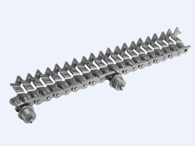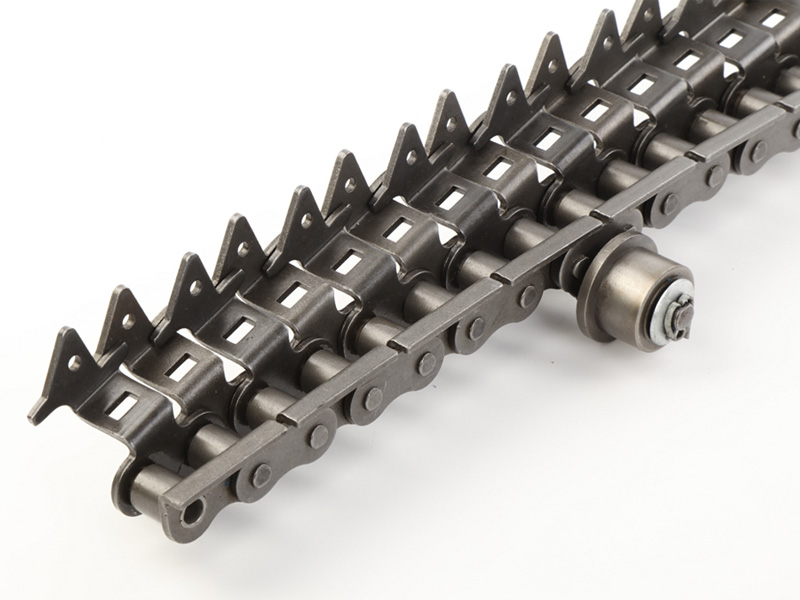 ● 印鐵烘房線鏈條是在標(biāo)準(zhǔn)短節(jié)距精密滾子鏈作為基鏈的基礎(chǔ)上加裝特殊附件的鏈條;典型產(chǎn)品結(jié)構(gòu)為一側(cè)通過安裝內(nèi)、外支撐片來保持鏈條直線度,另一側(cè)通過內(nèi)外附板安裝花架運輸物品。