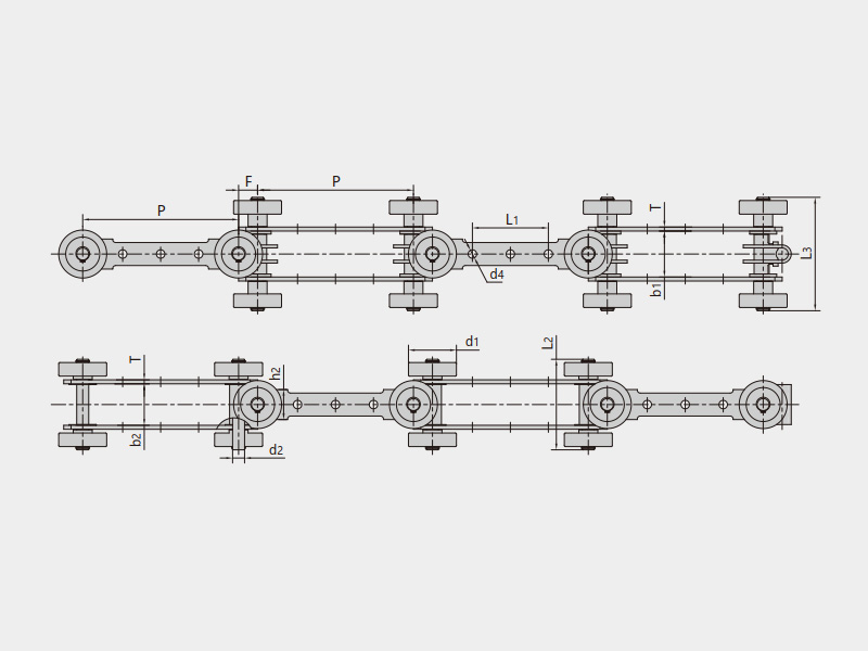 A型雙鉸接輸送鏈,用于方形軌道 | S型雙鉸接輸送鏈,用于方形軌道 | Q型雙鉸接輸送鏈,用于方形輕型軌道 |