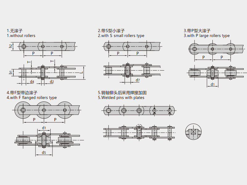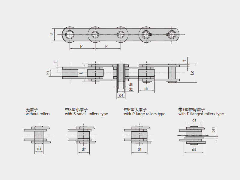 帶S型小滾子 | 帶P型大滾子 | 帶F型帶肩滾子 |