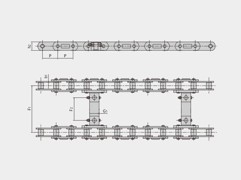 攤鋪機(jī)輸送鏈條基本結(jié)構(gòu)型式: