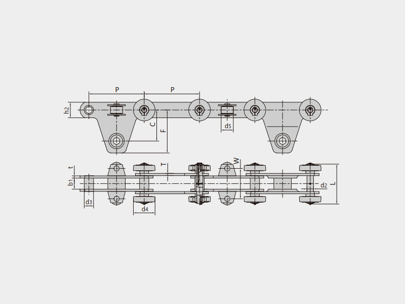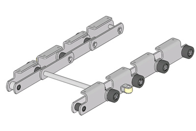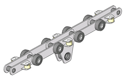 1.擺桿線鏈條:采用滾輪外置式和注油孔結(jié)構的設計,實現(xiàn)鏈條平穩(wěn)運行、延長使用壽命;